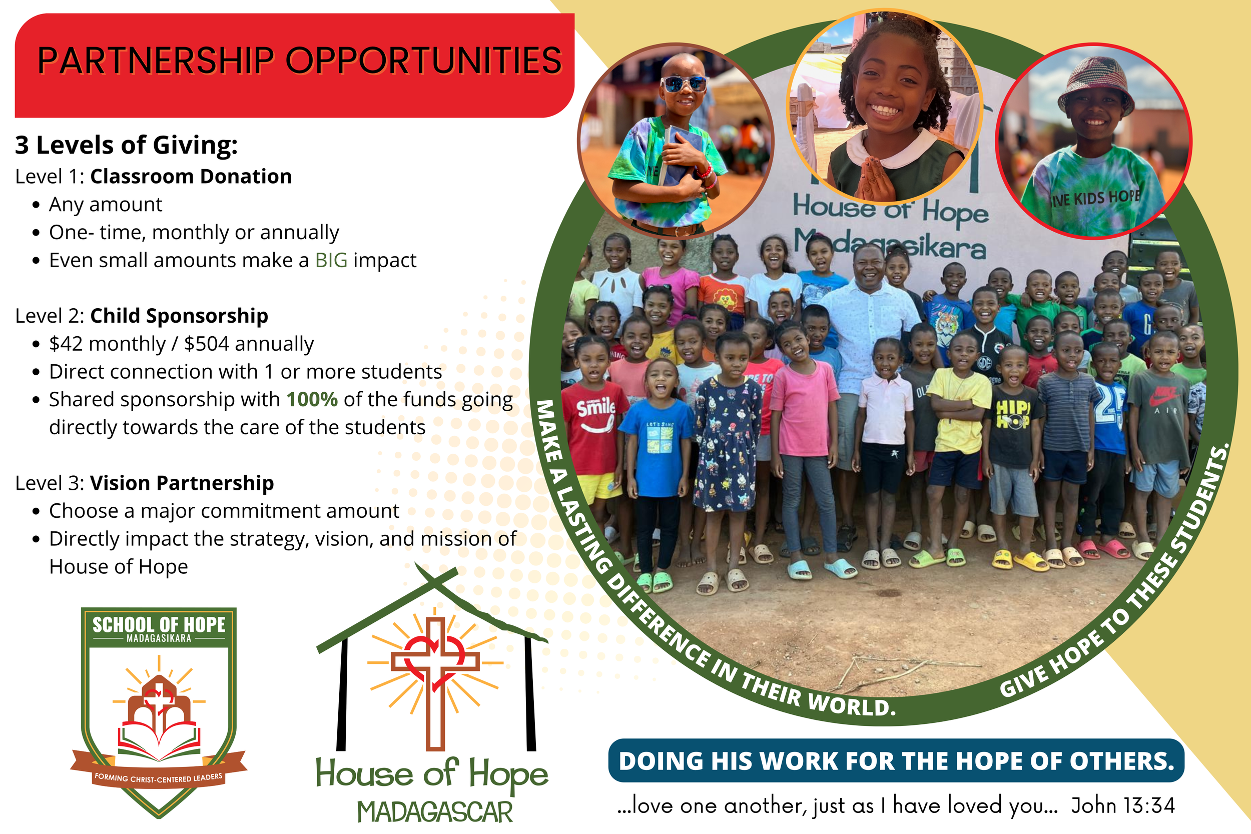 Congratulations. You have now helped to make a lasting difference in their world and thank you for partnering with us in Doing HIS work for the HOPE of others.